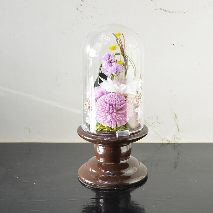 本州送料無料 プリザーブドフラワー お供えガラスドーム 桃菊 仏花 お悔やみ お彼岸 仏壇