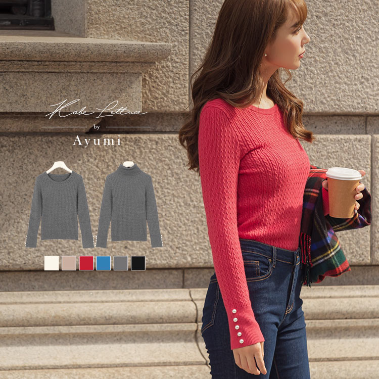 人気インスタグラマー岡部あゆみさんコラボ[ Uネック or タートル ]パールボタンハイゲージケーブルニット [C4035]【入荷済】 レディース トップス ニット セーター 長袖 秋 秋冬 冬 おしゃれ きれいめ ケーブルニット タートルネック